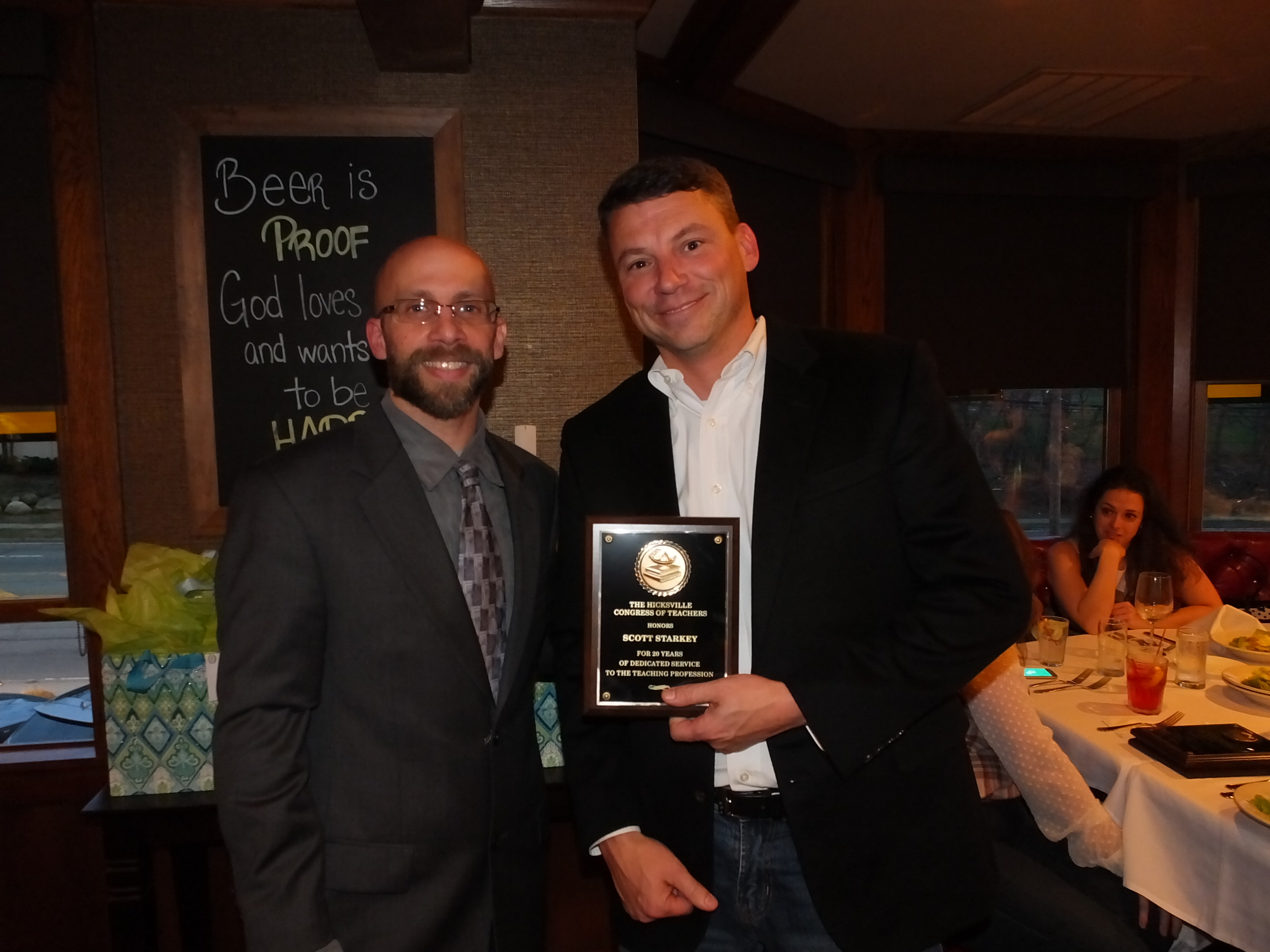 Retiring teachers each received the gift of a personalized clock. Additionally, teachers were honored with a plaque for completing twenty years of service in Hicksville. All attendees enjoyed food, drinks, and desserts, as well as the opportunity to celebrate their successful careers with their colleagues.