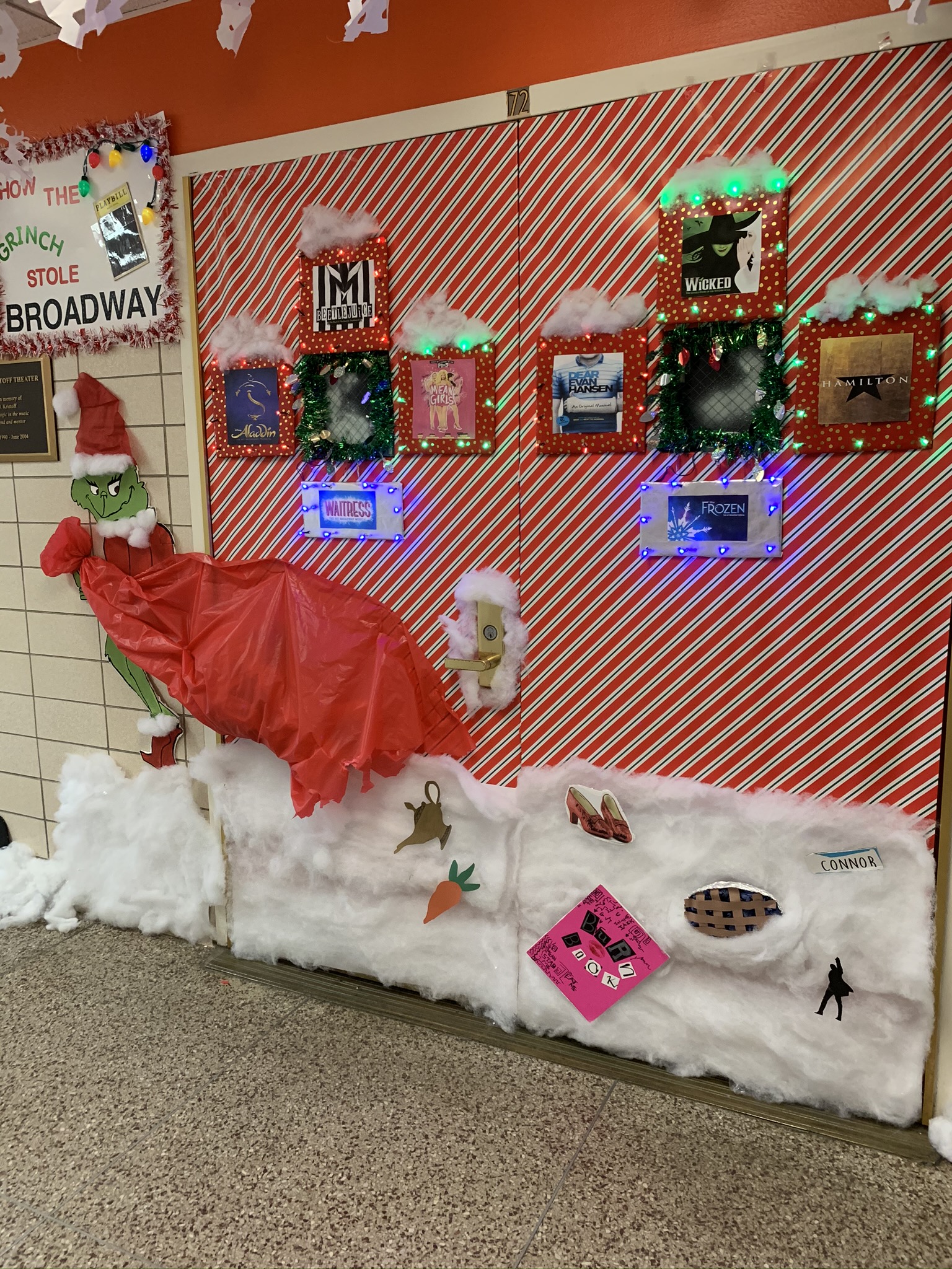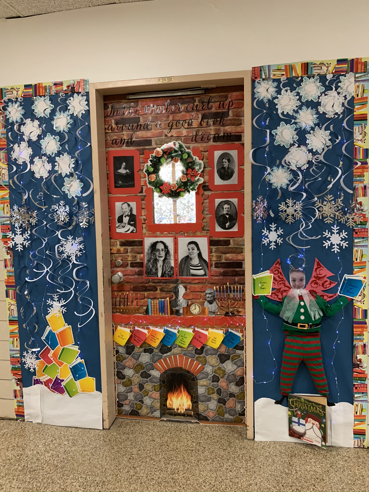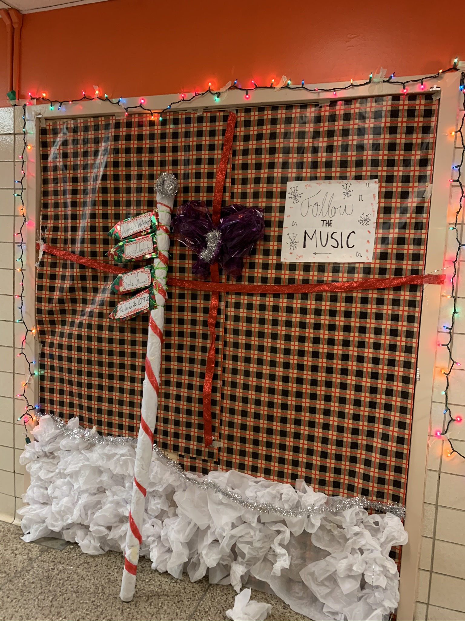 This December was the First Annual Door Decorating Contest at Hicksville High School. English teacher, Mr. Artie Mediate came up with the fantastic idea and the Director of Student Activities, Mrs. Angela Galante made it happen! Over 65 classroom doors participated in the contest and they were all phenomenal!! Ms. Temps and her Robotics team along with Ms. Hagedorn, Mr. Baio and the Equality Club also did a wonderful “Winter Wonderland” display in the lobby. The winner of the contest was room 323 decorated by Ms. Hurley, Ms. Pirozzi, and Ms. Shtein.
