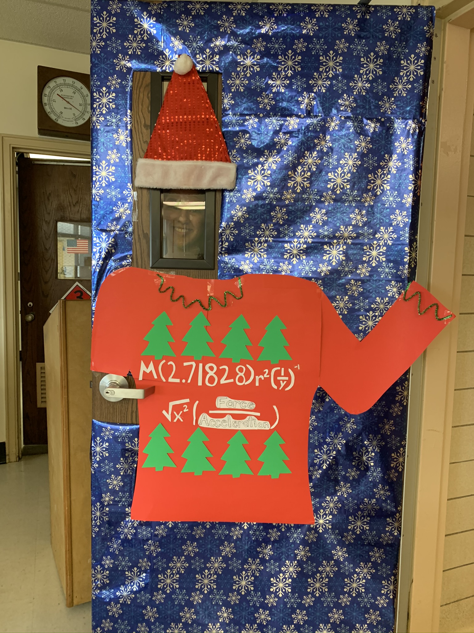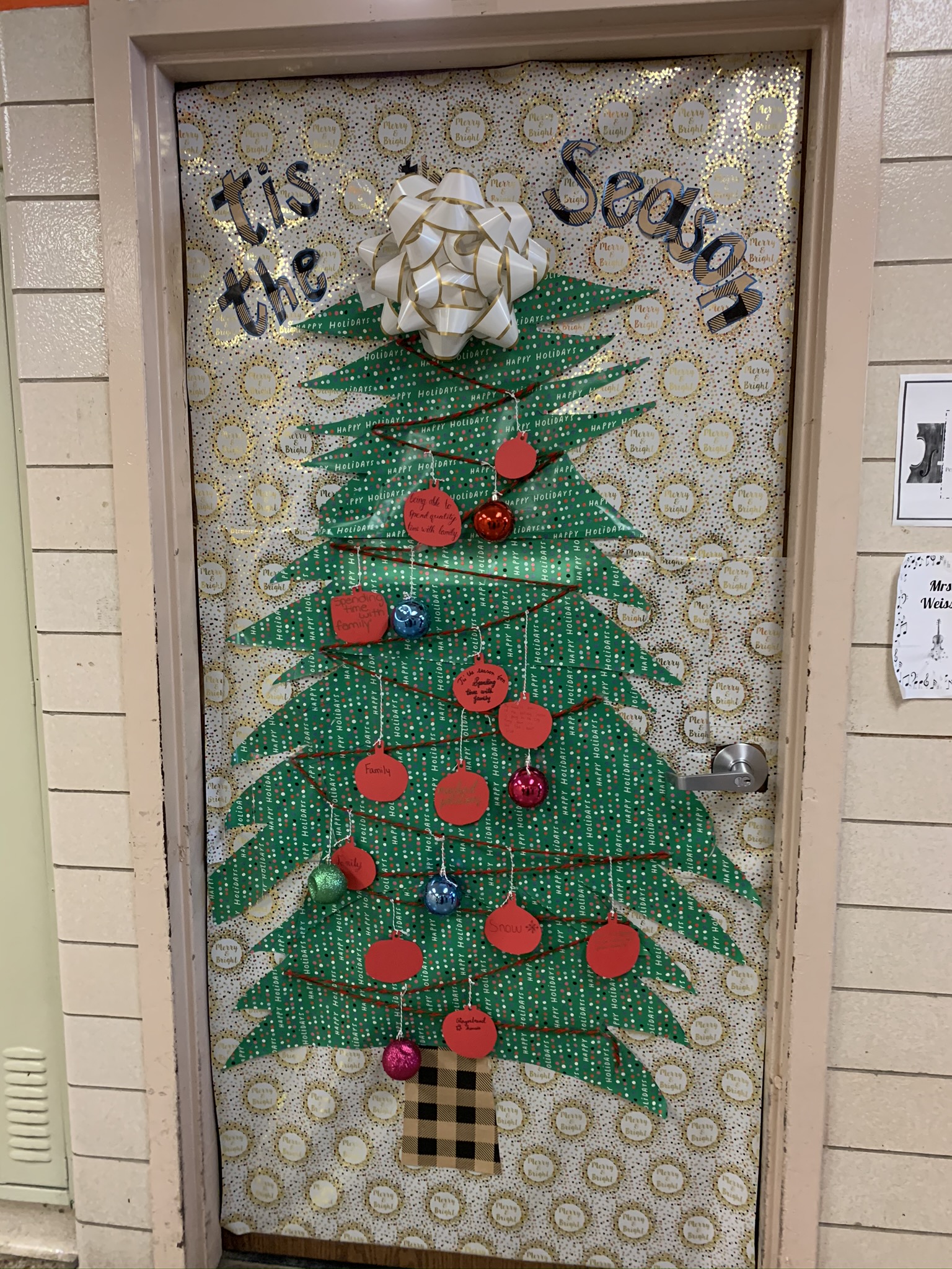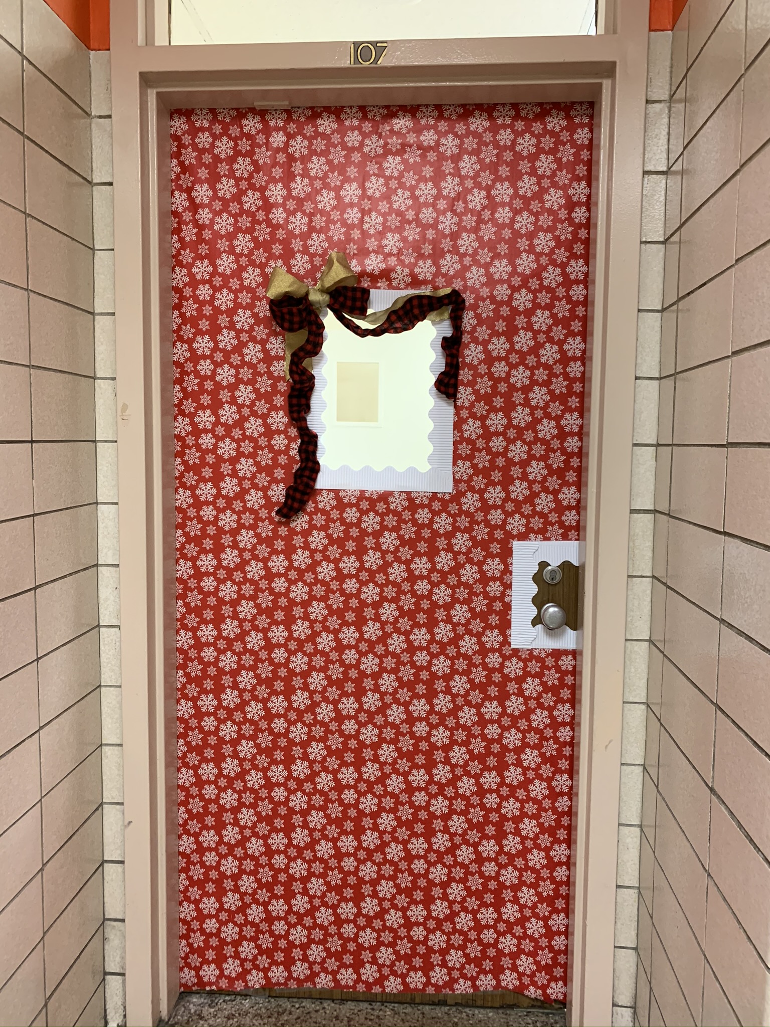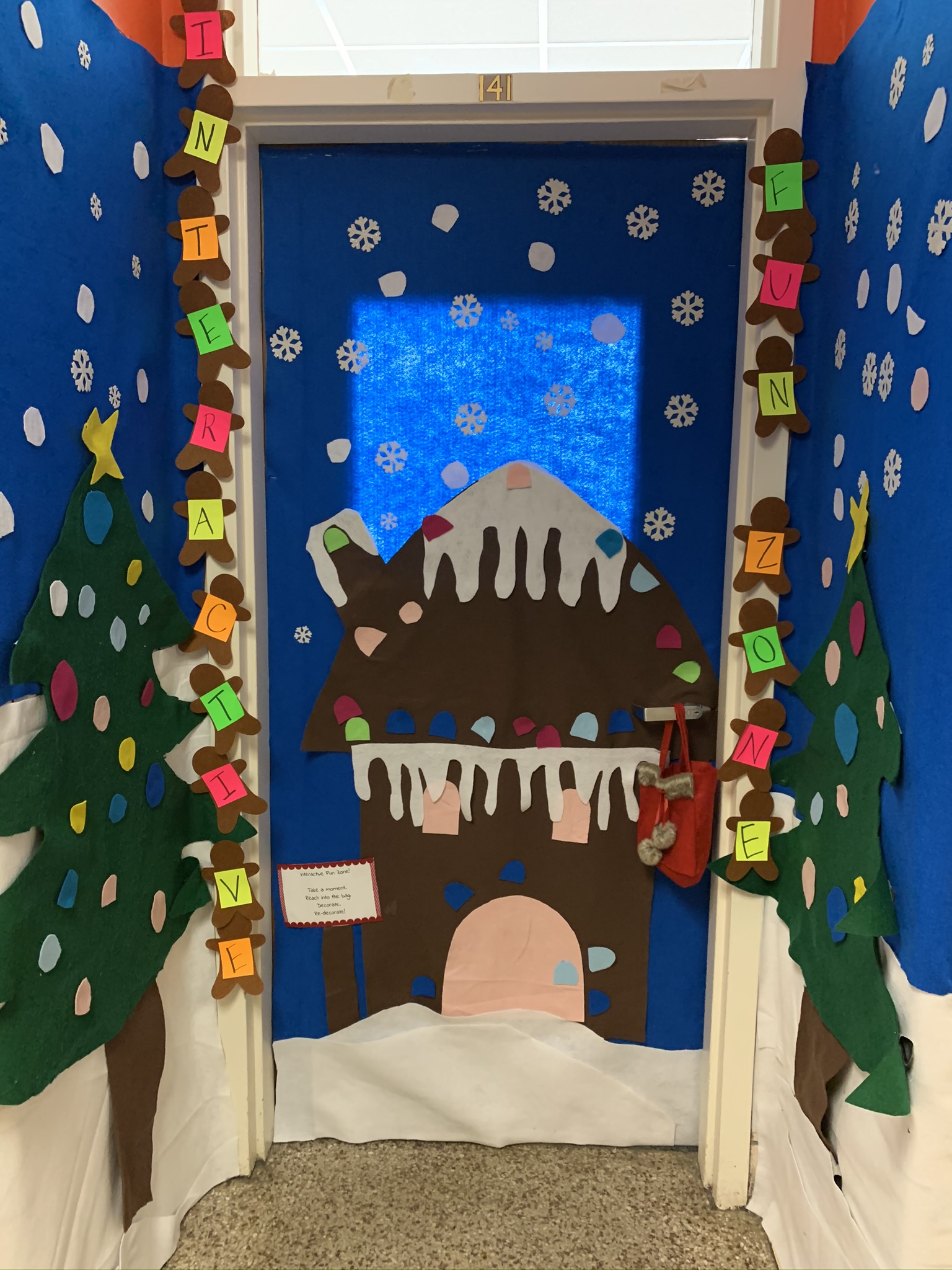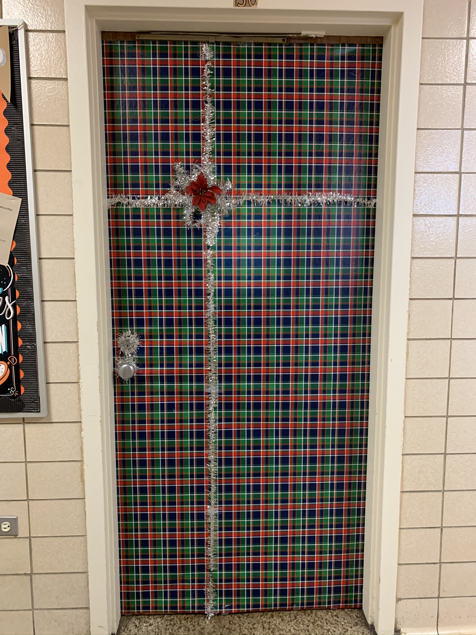 The door displayed a quilt held by a 3D reindeer. Each square of the quilt contained a quote submitted by each student stating how they celebrate their holiday and their individual traditions. Next year there will be a 1st, 2nd and 3rd place for each floor and hopefully 100% participation! The entire faculty, staff, and the students were excited to decorate the doors and the lobby and the holiday spirit was felt throughout the building!! We are looking forward to this tradition continuing in the high school for years to come!!