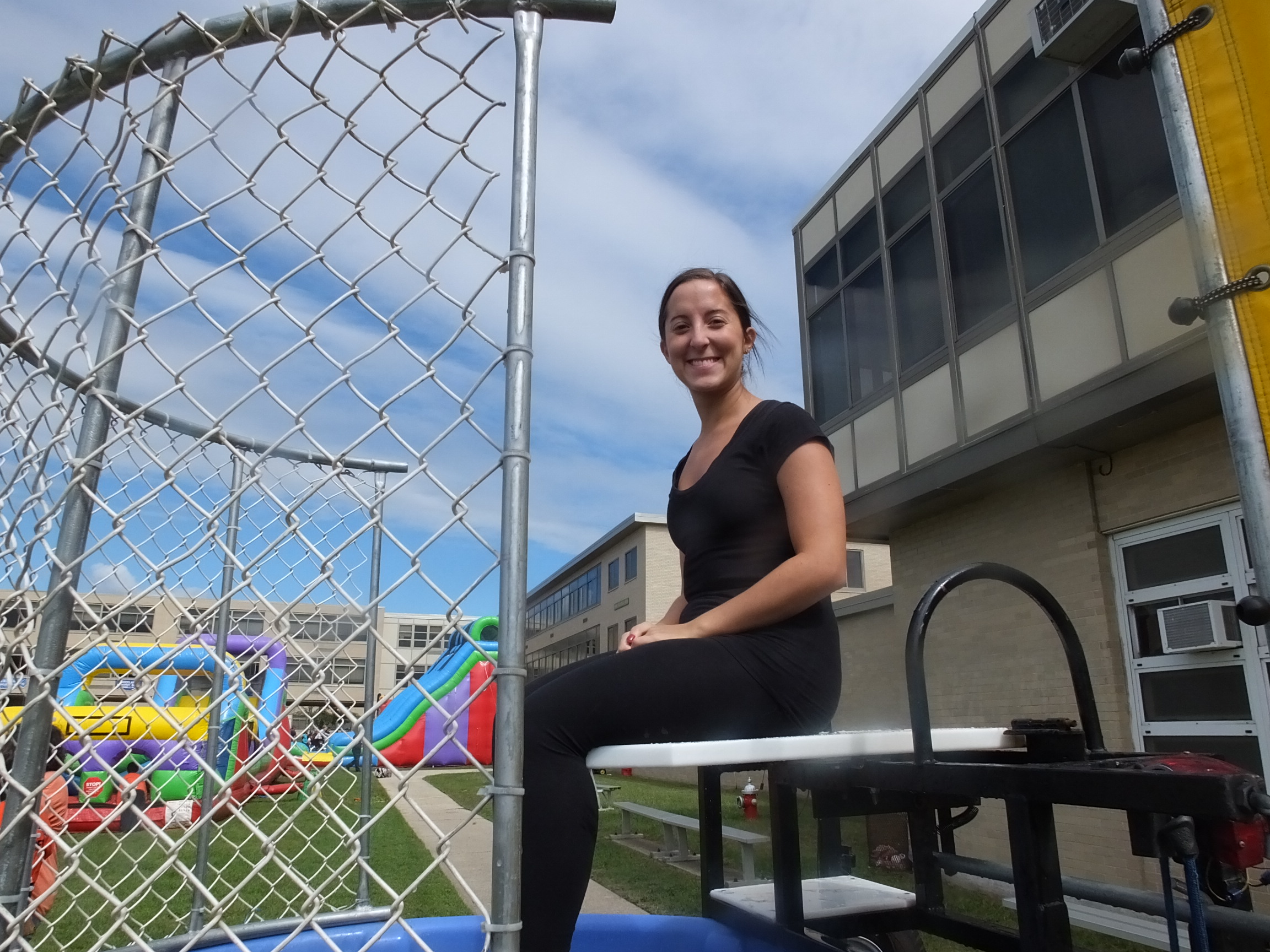 One of the most enjoyable traditions that the Hicksville community can count on as each new school year begins is Hicksville High School's Homecoming. This year the Hicksville PTA Council needed some brave volunteers to take turns sitting in their ever popular dunk tank, and wait as hundreds lined up willing to pay for the chance to send them plunging into the icy water below. The proceeds of this event are used to fund scholarships for graduating seniors. One of the first to answer the call was Dutch Lane School's beloved physical education teacher and Hicksville Congress of Teachers' union president, Tom Glenn. Being a great sport, Tom smiled broadly as parents, students of all ages, and even fellow colleagues enthusiastically took their turns trying to dunk him. Never one to disappoint, when the smallest children were unable to hit the target with the ball, Tom encouraged them to run up to the target and hit it with their hand so they could still see him make a big splash, much to their delight.
