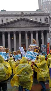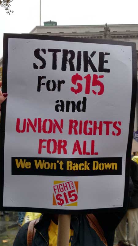 On Tuesday November 10th, 2015 HCT President Joan Deem and HCT 1st Vice President Thomas Glenn attended the Fight for 15 and A Union for Everyone rally in New York City's Foley Square against the appropriate backdrop of the Federal Courthouses. The rally centered on the importance of raising the federal minimum wage to $15 per hour nationwide. Many labor unions attended the packed late afternoon rally to listen to rousing speeches by Governor Cuomo, and heads of the Service Employees International Union (Home healthcare workers), AFSCME, UPS, the Teamsters, and various labor workers. The importance of raising the minimum wage is a human rights issue. Many hard-working Americans must be forced to decide between paying rent and putting food on the table for their families. The deleterious effects of poverty upon school children trickle down to educators who must elevate these children daily. This underlying sentiment was not lost on those in attendance.